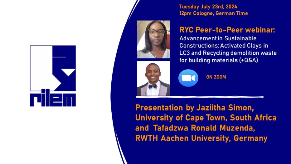 This webinar is brought to you by the RILEM Youth Council (RYC) and hosted by Angela Tawiah (Sub-Saharan Africa RYC representative).