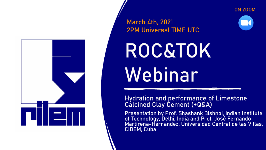 Hosted by Prof. Shashank Bishnoi, Indian Institute of Technology, Delhi, India and Prof. José Fernando Martirena-Hernandez, Universidad Central de las Villas, CIDEM, Cuba, the webinar will address the following subject: Hydration and performance of Limestone Calcined Clay Cement.
