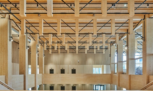 I love the strut-and-tie parts of this building (apparently, the only steel structural elements in the building). But there is more to see and praise in this 75-m tall timber skyscraper! Image courtesy of Åke E:son Lindman