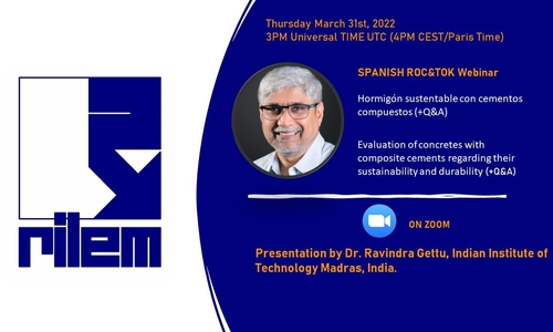 … the ROC&TOK webinars are available also in other languages than English? The first ROC&TOK webinar in SPANISH will be held on Thursday 31 st March at 4 pm CET (Central European Time) - 11 AM Argentinian time (ART). The speaker is Prof. Ravindra Gettu, IIT Madras, Chennai, India, presenting “Evaluation of concretes with composite cements regarding their sustainability and durability”. This is an event organised with the support of LatRILEM. More info here!
