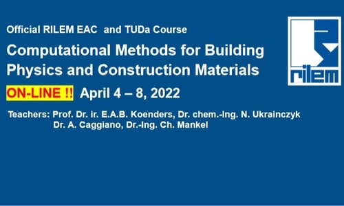 The on-line RILEM EAC course - “Computational Methods for Building Physics and Construction Materials” is rapidly approaching and there are still places available! The course will take place from April 4 – 8, 2022. Click here for more info and to register.
