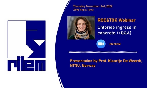 Nov ROC&TOK The second last ROC&TOK webinar in 2022 will take place on Thursday 3 rd November at 3 PM Paris time. Prof. Klaartje De Weerdt, NTNU, Norway, will talk about Chloride ingress in concrete. Registration is free but required. More information available here.