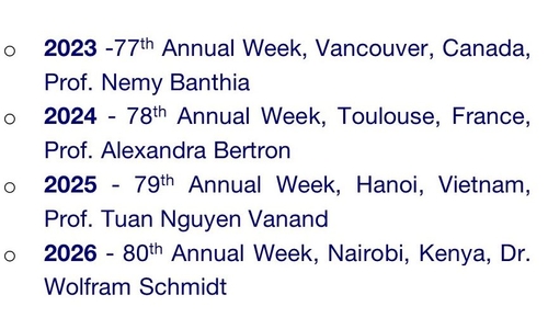 … the list of the past RILEM Honorary Presidents corresponds to the list of countries where the RILEM Annual Weeks have been held in the past 25 years? The 77 th Annual Week this year will be held in Canada, the 78 th Week next year in France, the 79 th Week in 2025 will be held in Vietnam, and the 80 th in 2026 in Kenya!