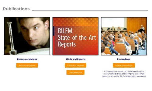 Recommendations are open access papers published in Materials and Structures; you can access them from here. State-of-the-ART-reports (STARs) are books published by Springer; the unedited version of RILEM STARs is available here for free. Proceedings published by RILEM publications are free and available here. Proceedings published by Springer are free only for RILEM members.