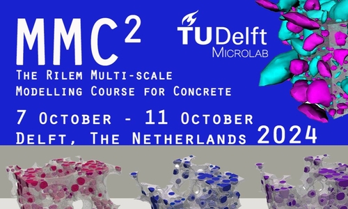 The registration for the RILEM Multi-scale Modelling Course for Concrete (MMC 2) is open! The course will be held on 7- 11 October 2024 at the Department Materials, Mechanics, Management & Design (3MD) of TU Delft, The Netherlands. More info available here!