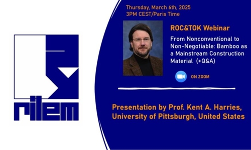The next ROC&TOK webinar will take place on 6 March 2025 at 3PM CEST/Paris Time. The speaker will be Prof. Kent A. Harries, University of Pittsburgh, United States, presenting “From Nonconventional to Non-Negotiable: Bamboo as a Mainstream Construction Material”. The webinar is free, but registration is needed!
