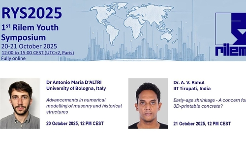 The RILEM Youth Symposium (RYS) is approaching fast! Do not miss the presentations by the two keynote speakers, Dr Antonio Maria D’Altri - University of Bologna, and Dr A. V. Rahul - IIT Tirupati, respectively, taking place on 20 and 21 October at 12 PM CEST.